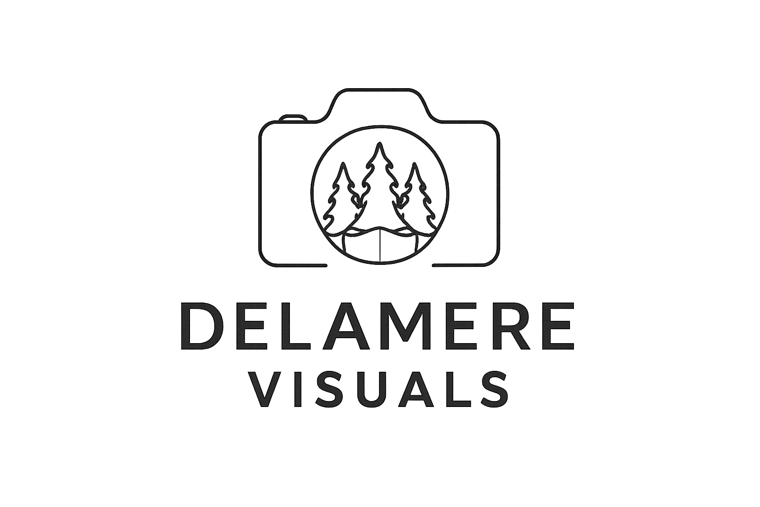 A logo for Delamere Visuals featuring a camera outline with trees inside the lens, and the text 'DELAMERE VISUALS' below.